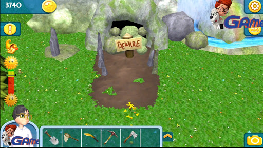 There is a mysterious cave on the north side of the town near the sea. But, we have to first repair the cave.